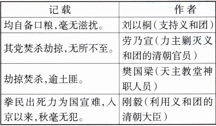 12. 下表是关于义和团的记载。这反映出( )。