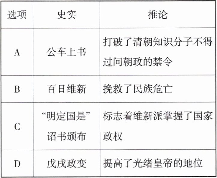 13. 史论结合是历史学习的基本方法。下表中的史实与推论对应正确的是( )。