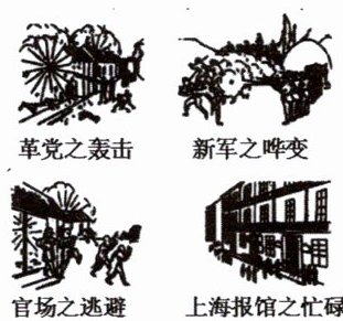 9. 下面一组漫画选自 1911 年 10 月 13 日发行的《神州日报》。对漫画反映的历史信息解读正确的是( )。