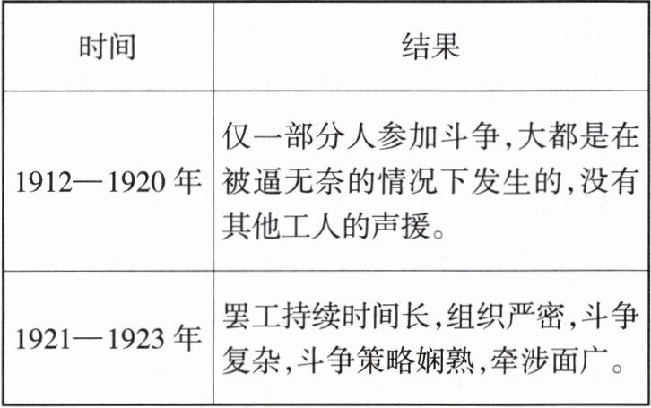 13. 下面是中国早期的铁路工人斗争情况表。铁路工人斗争状况的变化是由于( )。