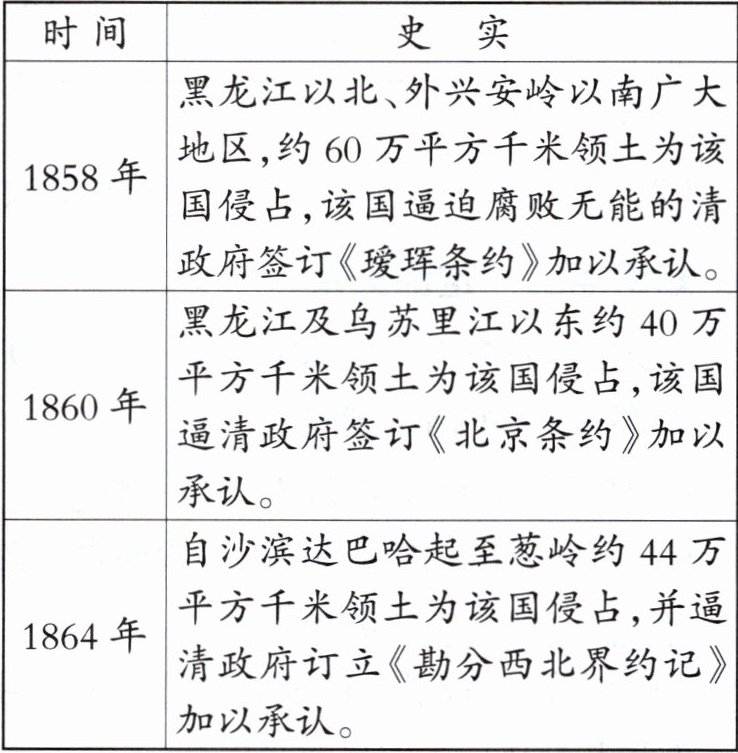 (2)根据材料二,指出大事记中记载的“该国”的名称。根据所学知识,指出除大事记中涉及的条约外,该国与中国签订的其他条约。(列举一例即可。)