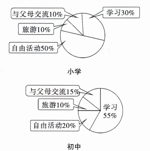 (1)上图中,从小学到初中,______所用的时间明显增加。