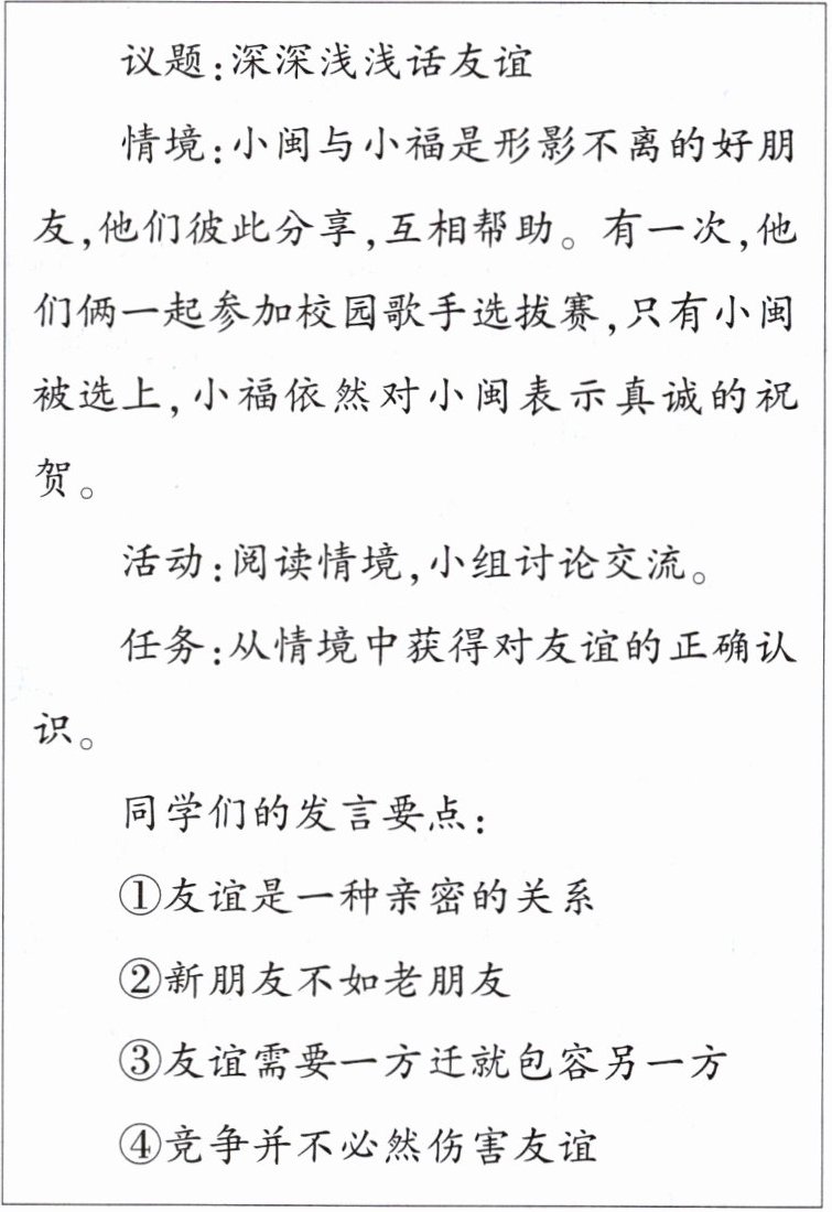 6. “朋友是雨中的伞,有你不凄凉;朋友是雪中的炭,有你胜严寒,朋友是被中的棉,有你才温暖;朋友是菜中的盐,有你才有滋味。”这告诉我们( )。