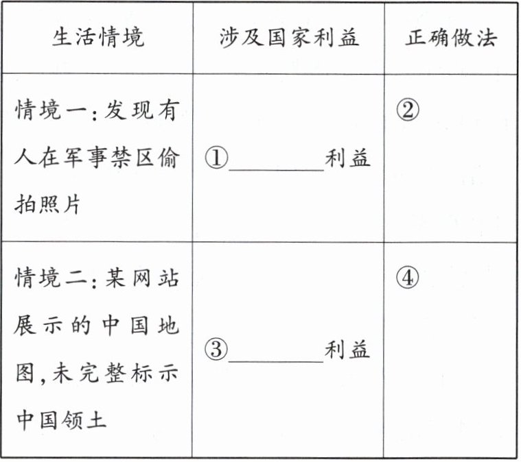 3. 学完“国家利益至上”一课后,小佳对知识点做了一番整理。下列是小佳整理的内容,错误的一项是( )。