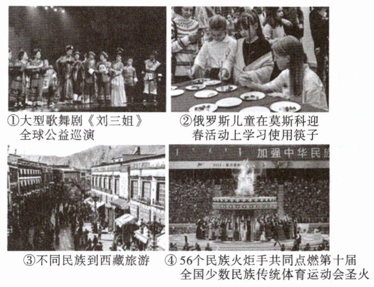 5. 党的二十大报告强调,“以铸牢中华民族共同体意识为主线”“全面推进民族团结进步事业”。下列图片所示做法直接体现此要求的是( )。