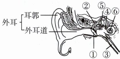 的振动,振动经过听小骨,刺激了[⑥]耳蜗