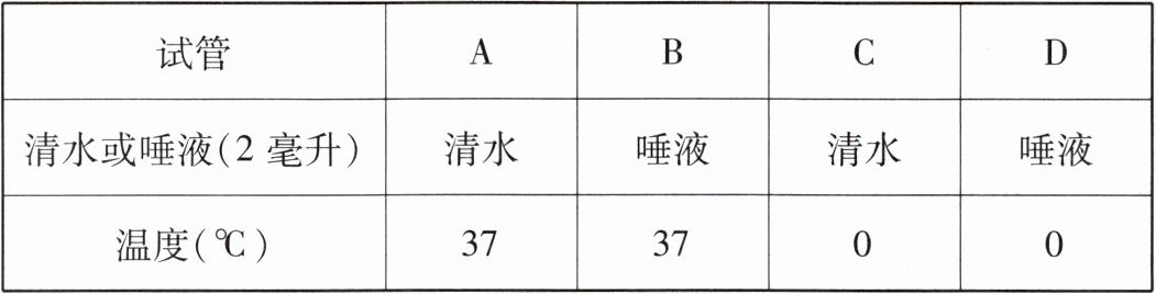 2. 探究“食物在口腔内的消化”时,先向试管中加入适量的馒头碎屑,然后按照下表进行实验。一段时间后滴加碘液,最不可能变蓝的是(