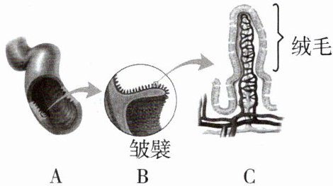 增大了小肠的吸收面积。(4) 绒毛内有丰富的