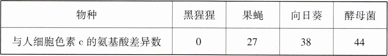 5. 物种间细胞色素c的氨基酸组成的差异,常被作为比较生物亲缘关系的依据。一般来说,差异越小,亲缘关系越近。请根据下表判断,与人类亲缘关系最近的是(