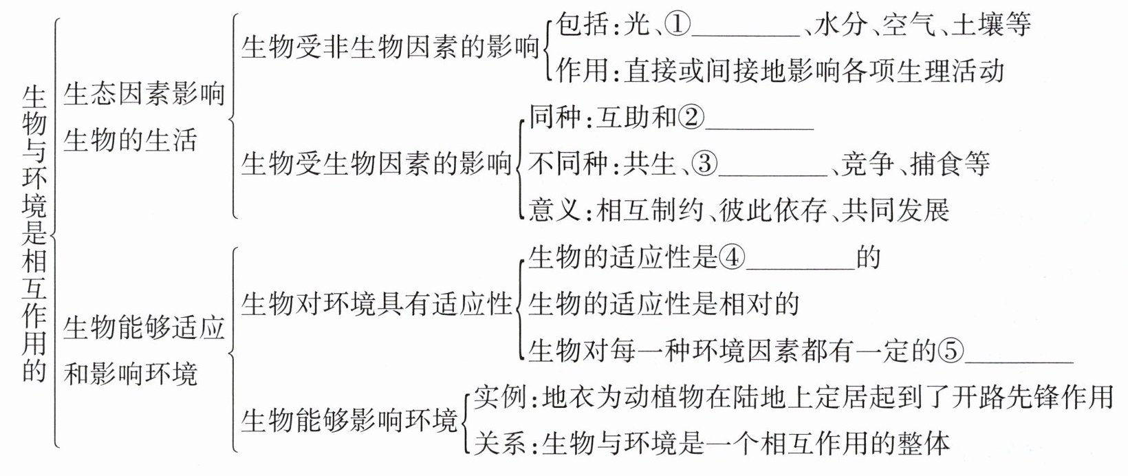 ①温度 ②斗争 ③寄生 ④普遍存在 ⑤耐受范围