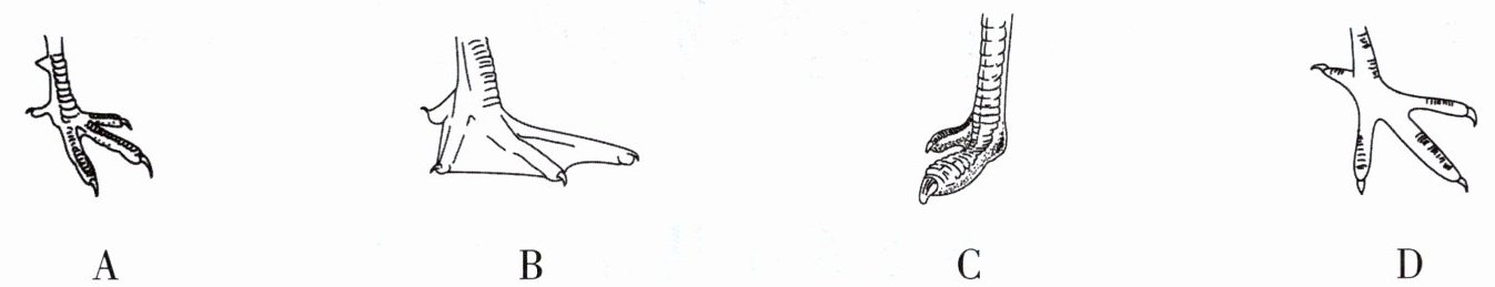 4. 在研学中,同学们看到几只鸟在水面游动,还会潜入水底,生物老师告诉他们这是绿头鸭。据此推测,绿头鸭足的形态特征是(