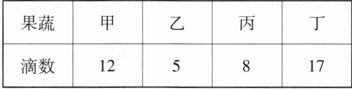 维生素C的一个重要特性是能使蓝色的2,6 - 二氯酚靛酚溶液褪色。某兴趣小组选取甲、乙、丙、丁4种果蔬研磨成汁,并用统一规格的滴管,将它们分别滴入2毫升相同浓度的2,6 - 二氯酚靛酚溶液中,使之褪色的滴数如下表。