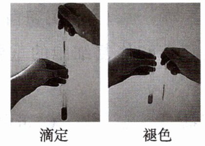 2,6 - 二氯酚靛酚溶液,用滴管吸取一种果蔬提取液,边滴加边振荡