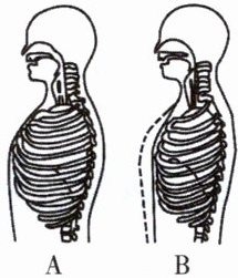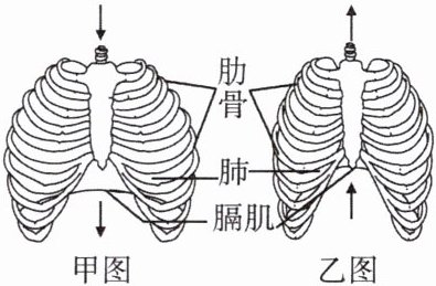 1. 同学们,让我们来做几个慢动作:深吸气、深呼气……深吸气时你的膈肌和胸廓的变化是(甲图吸气、乙图呼气)(