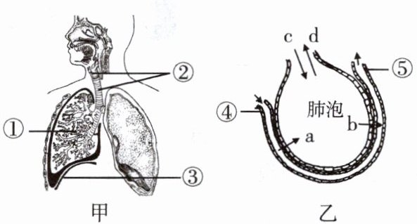 (3)图乙所示的外界气体按照c方向进入肺泡时,图甲中③应处于