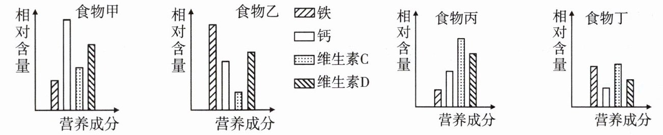 7.下图是4种食物的营养成分相对含量示意图。某同学偏食导致营养不均衡,患了贫血症,则该同学饮食中最好应多摄取下图中的食物(
