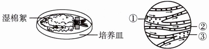 7. 右图为“观察小鱼尾鳍内血液的流动”实验及显微镜下观察到的物像,以下解释不合理的是(