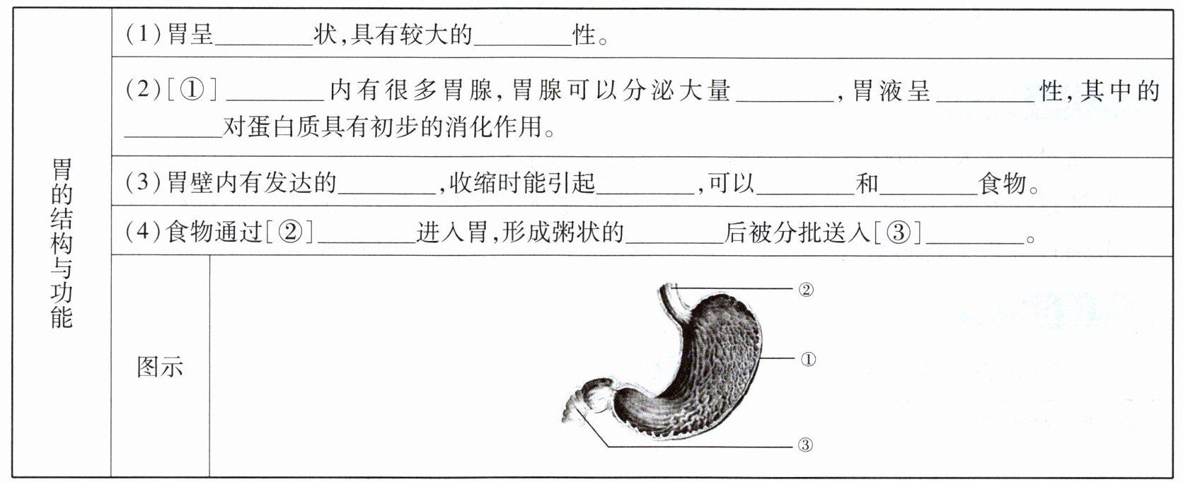 氨基酸 囊 伸展 胃壁 胃液 强酸 胃蛋白酶 肌肉层