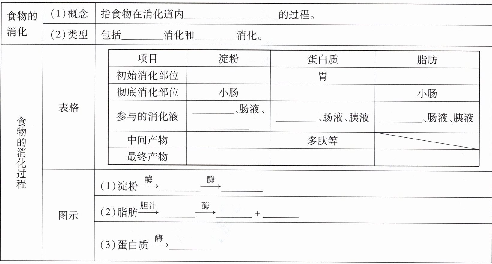 小肠 唾液 胰液 胃液 胆汁 麦芽糖 葡萄糖 氨基酸