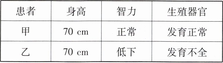 甲患者的症状是由于幼年时期哪种激素分泌不足引起的?(