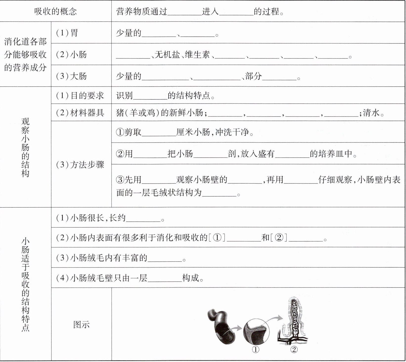 基酸 甘油 脂肪酸 水 无机盐 维生素 小肠壁 镊子