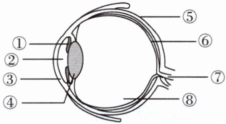 (2)④ 晶状体 ⑧ 玻璃体(可颠倒位置)