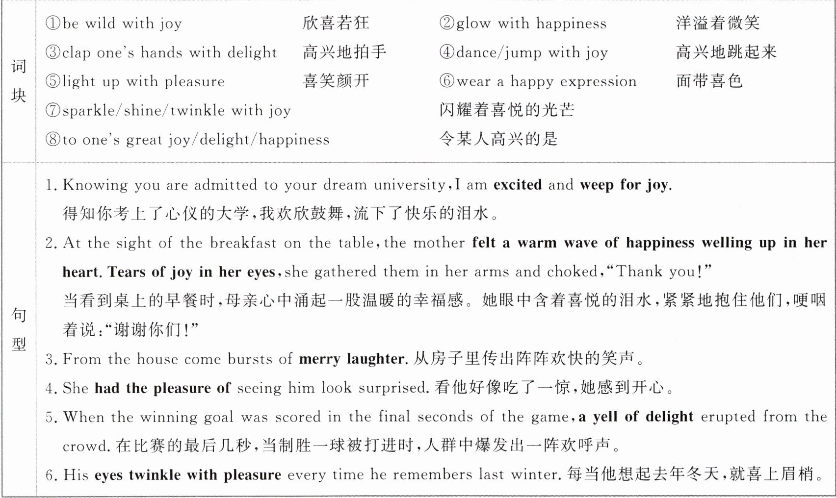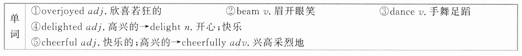 ① was so pleased/ delighted/cheerful/overjoyed that she smiled brightly ②left for the Bernard’s house cheerfully ③Bernard was so delighted/glad/happy/pleased/cheerful that he almost jumped up ④were also seized with happiness/wild with joy