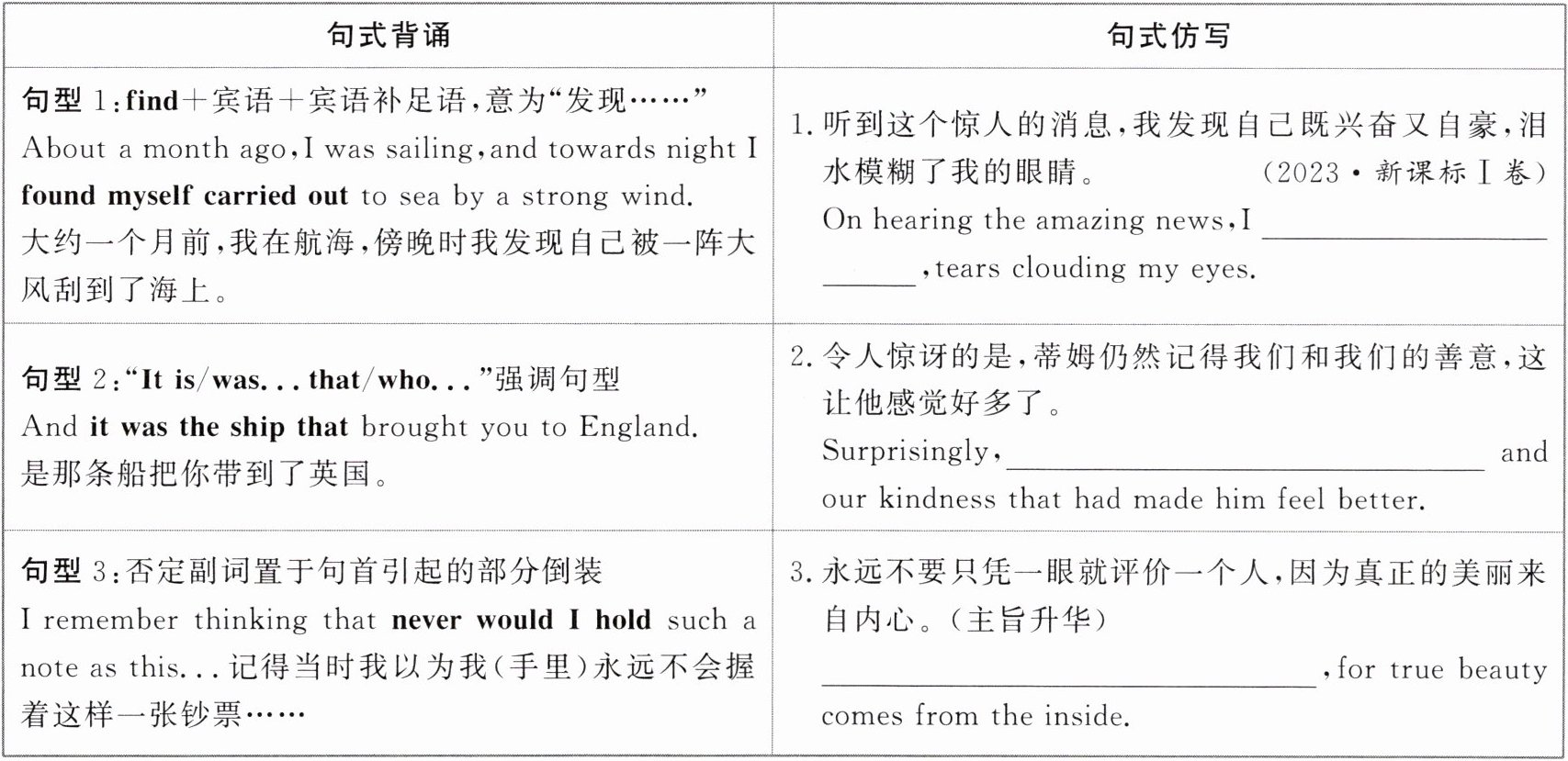 句式仿写 1.found myself excited and proud 2.it was Tim who still remembered us 3.Never will we judge people at first glance
