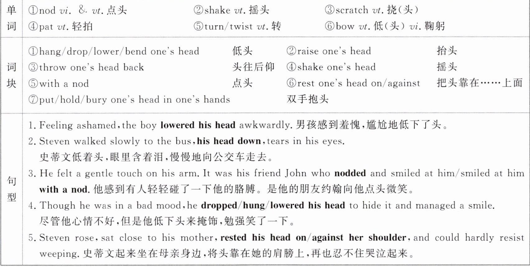 续写语料运用 [用表“头部动作”的表达补全下面的微场景并背诵]