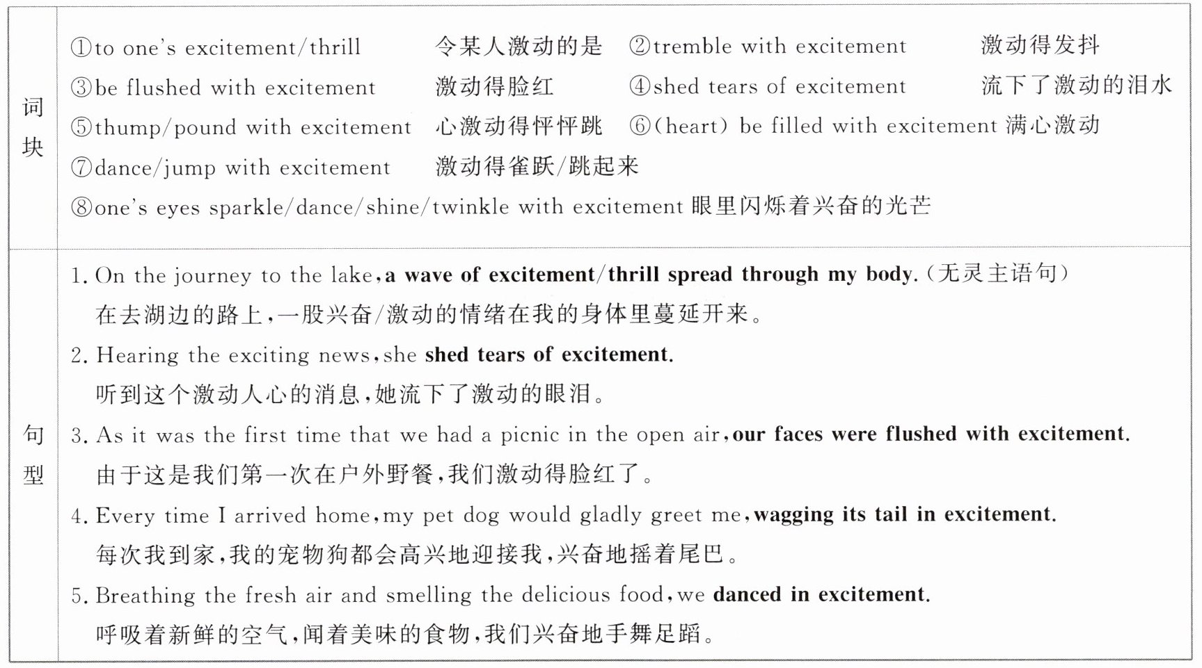 拓展语料积累 [情感细节描写:激动、兴奋]