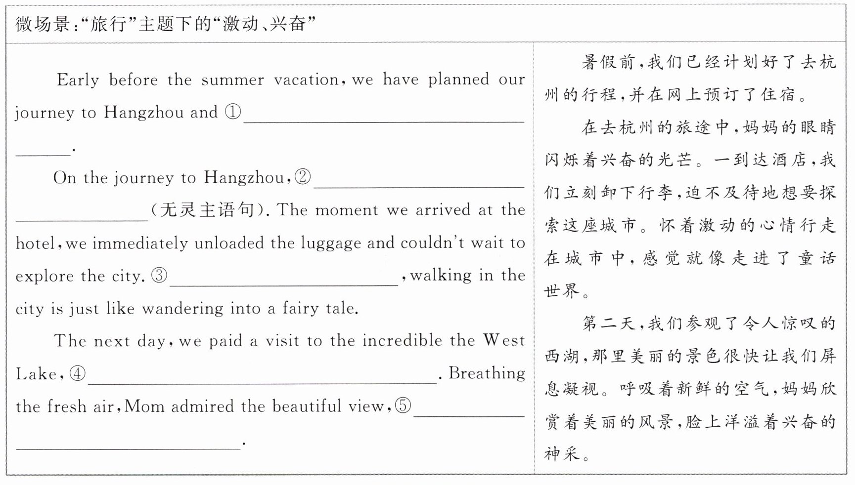 ①booked our accommodations on the Internet ②Mom’s eyes sparkled/twinkled/shone with excitement ③Our eyes shining with excitement ④whose amazing sight soon took our breath away ⑤her face glowing/flushing with excitement