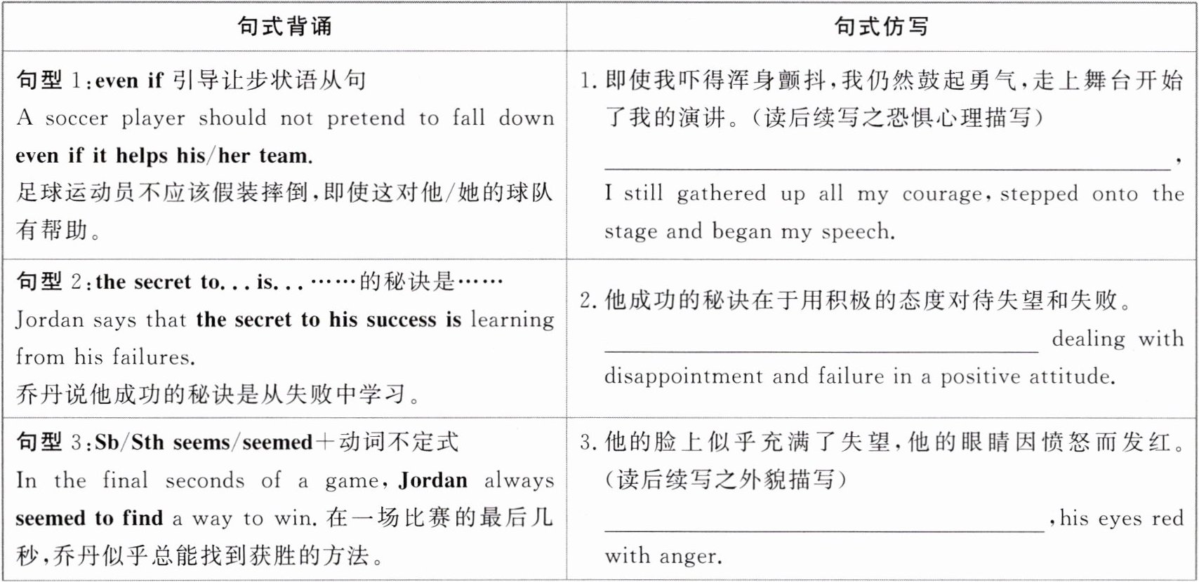 句式仿写 1.Even if I was so frightened that I trembled all over 2.The secret to his success is 3.His face seemed to be full of disappointment 4.By facing difficult situations bravely