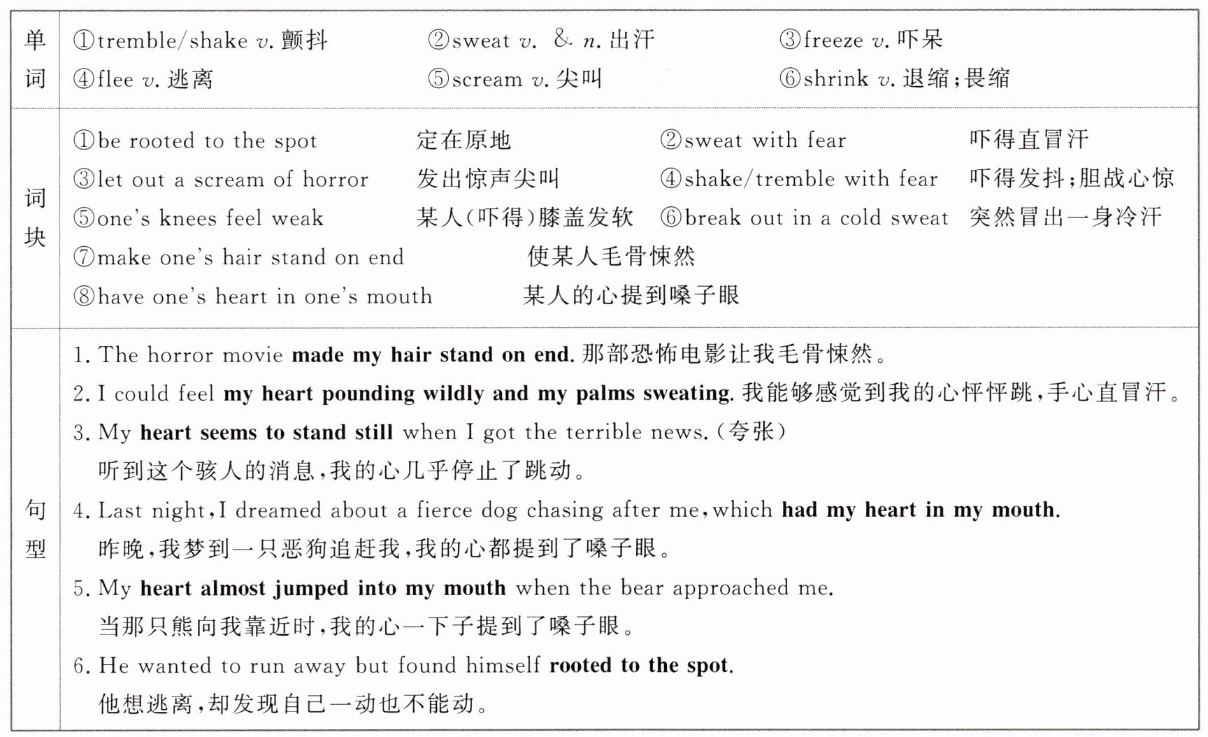 拓展语料积累 [情感细节描写:恐惧(二)]