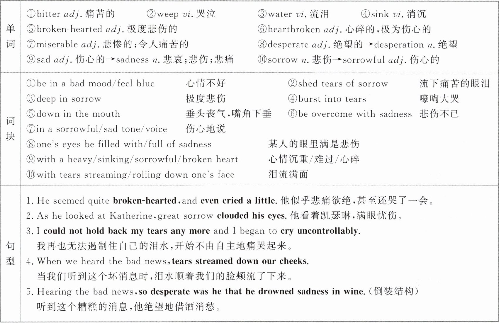2. 拓展语料积累 [情感细节描写:伤心、难过]