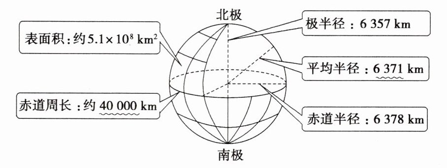 1.结合左侧有关地球大小的数据,描述地球的形状。