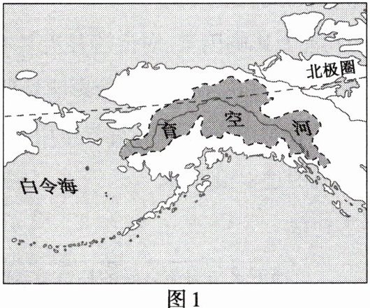 1.图2中①②③④分别代表育空河流域的 ( )