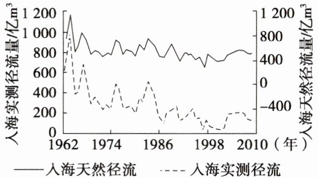 (2025.浙江嘉兴基础测试)下图为1962~2010年黄河入海径流量变化图。读图,完成3~4题。
