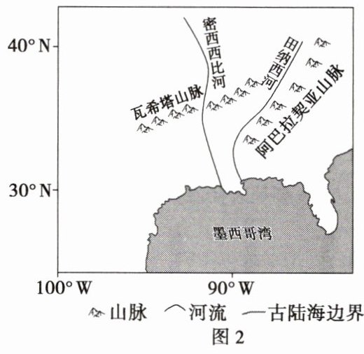 (1)比较距今约1亿年时瓦希塔山脉两侧河流水文特