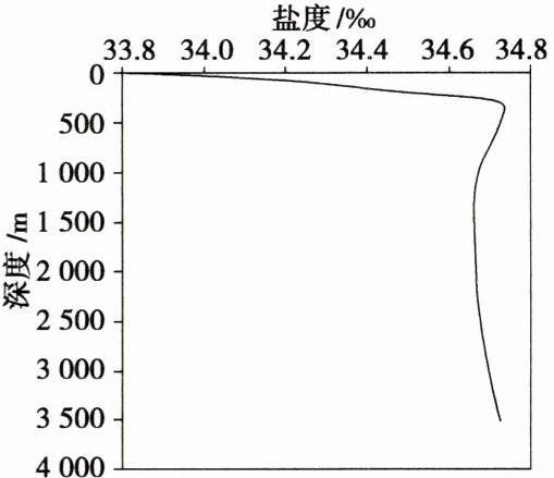 3. 该点所在海域海水盐度的垂直变化特点是 (