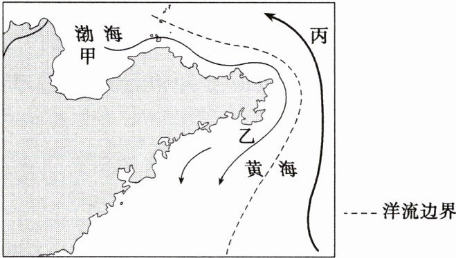 (2024·山东济南期中)山东半岛毗邻渤海和黄海,半岛周边海域存在一个环流系统,具有明显的季节变化特征。下图为某季节半岛周围海域环流示意图。据此完成 1~2 题。