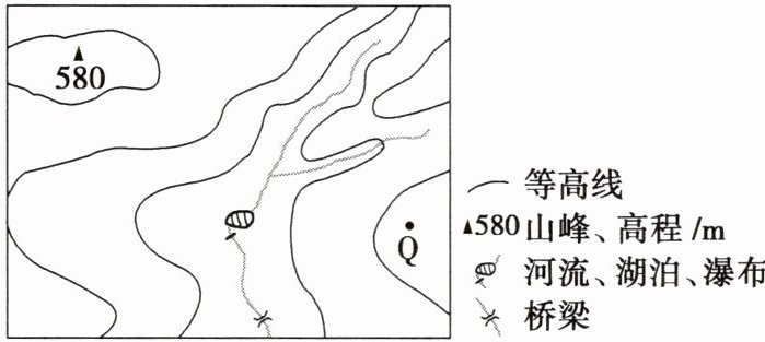 (2)桥梁附近河岸与山峰的高差最接近 (