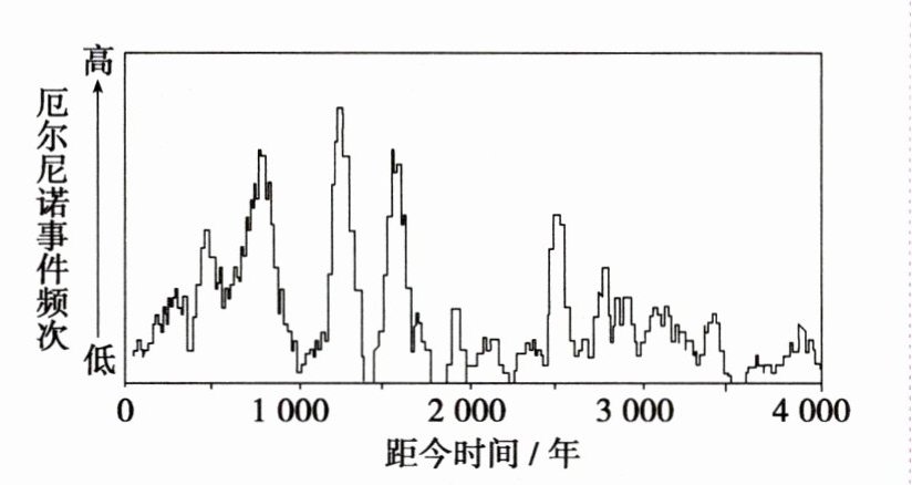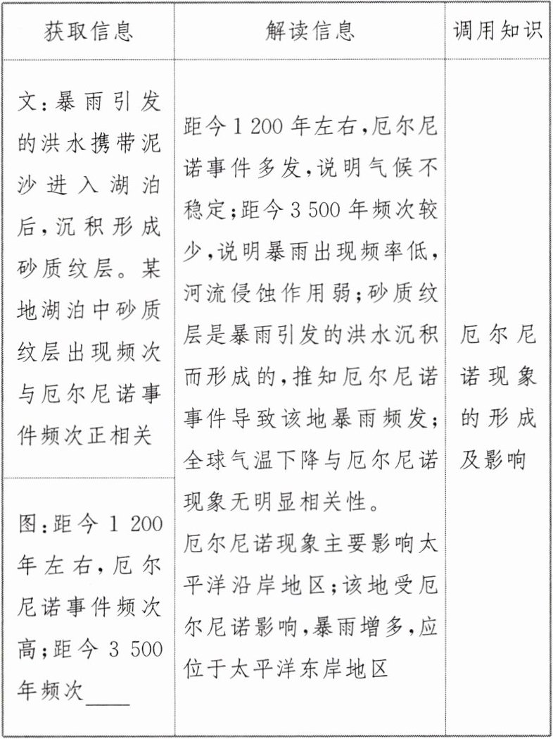 综合思维:根据湖泊中砂质纹层与厄尔尼诺事件频次等信息,推测厄尔尼诺现象发生时该地气候变化情况。