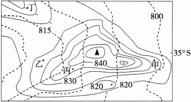 (2025·江苏扬州开学考试)暑假期间,我国某中学地理实践小组到南美洲西海岸某地开展地理研学活动,下图示意该地区的土壤表面等高线(实线,单位:米)和基岩表面等高线(虚线,单位:米)分布。据此完成2~3题。