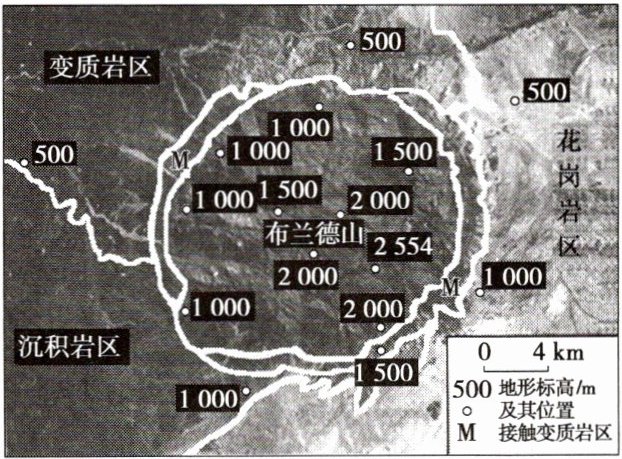 典例2 (2022·江苏卷,节选)布兰德山位于非洲纳米比亚北部,是典型的花岗岩山体。下图为布兰德山及周边区域地质地貌遥感影像图。据此完成(1)~(2)题。