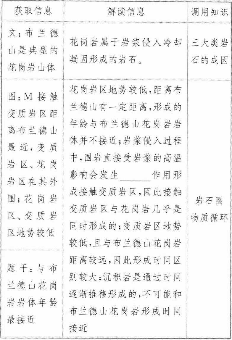 综合思维:结合各类岩石的成因和各类岩区的空间位置关系,理清各岩区形成早晚的时间关系。