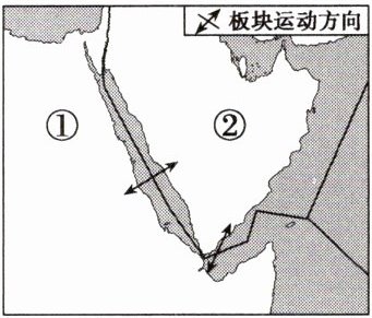 1.A 2.C 第1题,根据板块构造图,①位于非洲板块;②位于阿拉伯半岛,属于印度洋板块。第2题,图中板块边界属于生长边界,生长边界位于大陆内部,会形成新的海洋和裂谷,生长边界位于大洋内部,会形成海岭;海沟是消亡边界形成的。