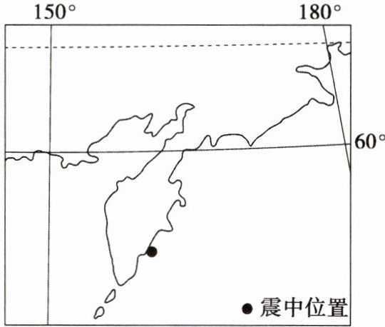 (2025·河北衡水期中)2024年8月18日,堪察加半岛周边海域发生里氏7.0级地震,震源深度达46km。下图为该次地震震中位置示意图。据此完成1~2题。