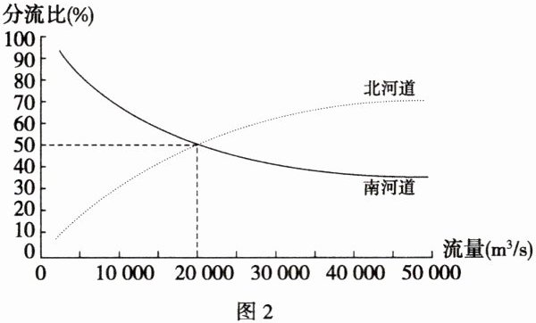 (2)研究发现,关洲河段年内流量常出现南、北河道主次变更现象。据此推测关洲河段南、北河道的特征。(4分)