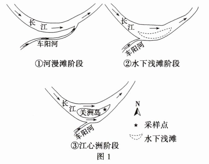 变化过程:早期,河漫滩地处河湾凹岸,与陆地相连,随着长江流速加快,南岸河漫滩侵蚀加剧,夺车阳河下游河道东流,原河漫滩残余部分形成水下浅滩;长江河道继续南迁,流速减慢,水下浅滩因泥沙沉积出露水面形成江心洲,使此段河道变为双分汊型河道。