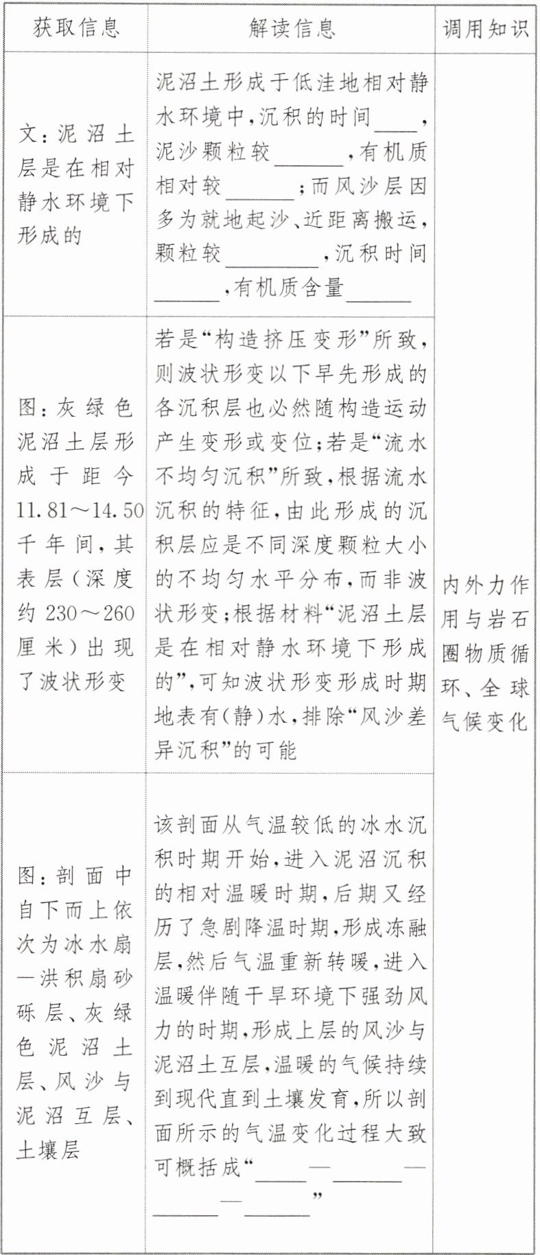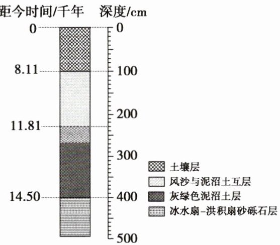 (2)推测灰绿色泥沼土层上部(深度约 230~260 厘米)出现的波状形变形成于 (